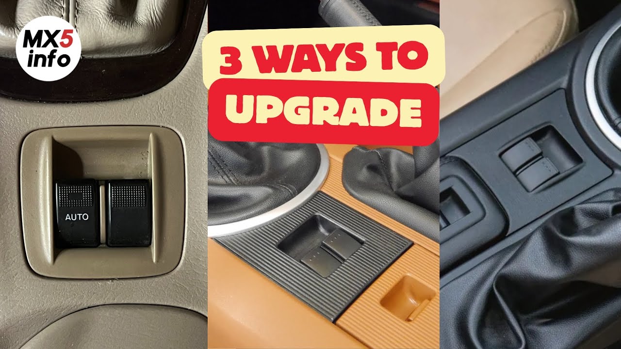 De NBFL kreeg als eerste een raamschakelaar met een auto-down functie voor de bestuurder. Altijd handig als je bij een parkeergarage of tolpoortje het raam snel volledig wil openen. Voor de bijrijder was die functie er niet, terwijl we in die bouwjaren nog lang niet allemaal met navigatie in de auto rondreden, en af en toe naar de weg konden vragen bij een vriendelijk passant. Maar belangrijker voor een MX-5 rijder is, om snel beide ramen volledig te openen om vervolgens met volle teugen van het open rijden te gaan genieten. De NBFL had dus één auto-down knop, en niet twee zoals ik in de foto boven dit bericht geknutseld heb.