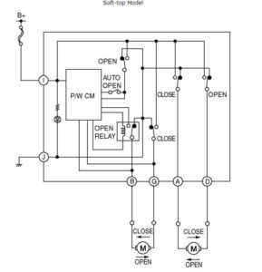 Wat ik wél heb kunnen testen, is de raamschakelaar van een 2006-2008 NC met retractable hardtop (maar zónder keyless entry). In dat model zit namelijk een raamschakelaar met een auto-down functie voor beide ramen. Dat heeft er volgens mij mee te maken, dat Mazda de ramen via een elektrisch signaal, een beetje opent voordat het dat automatisch geopend of gesloten wordt. Die schakelaar heb ik voor de aardigheid eens aangesloten op mijn NBFL en dat werkte prima, maar het past natuurlijk voor geen meter.
