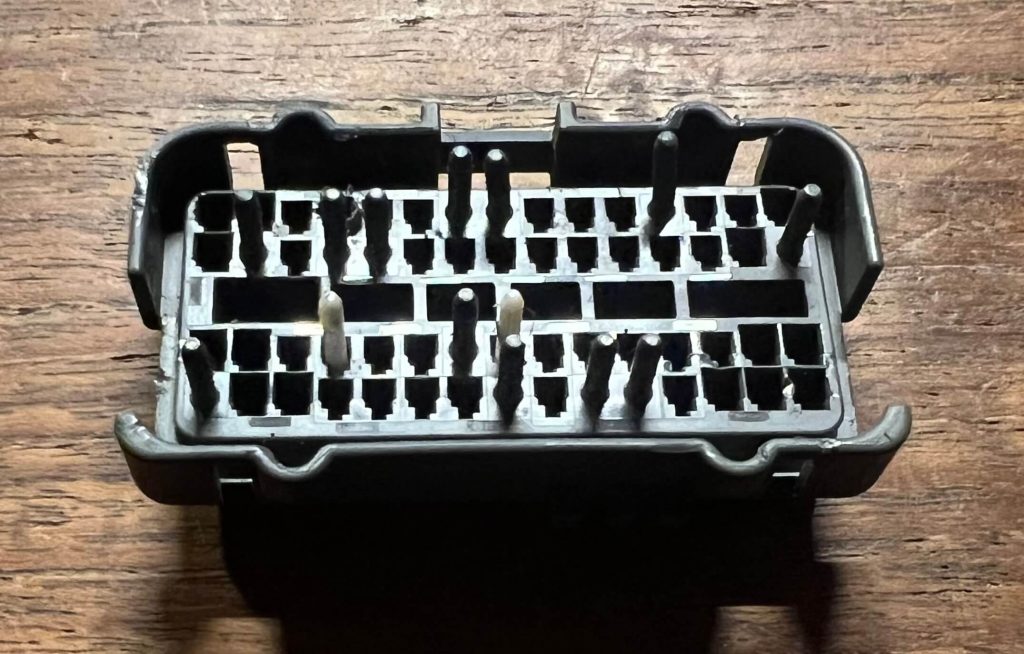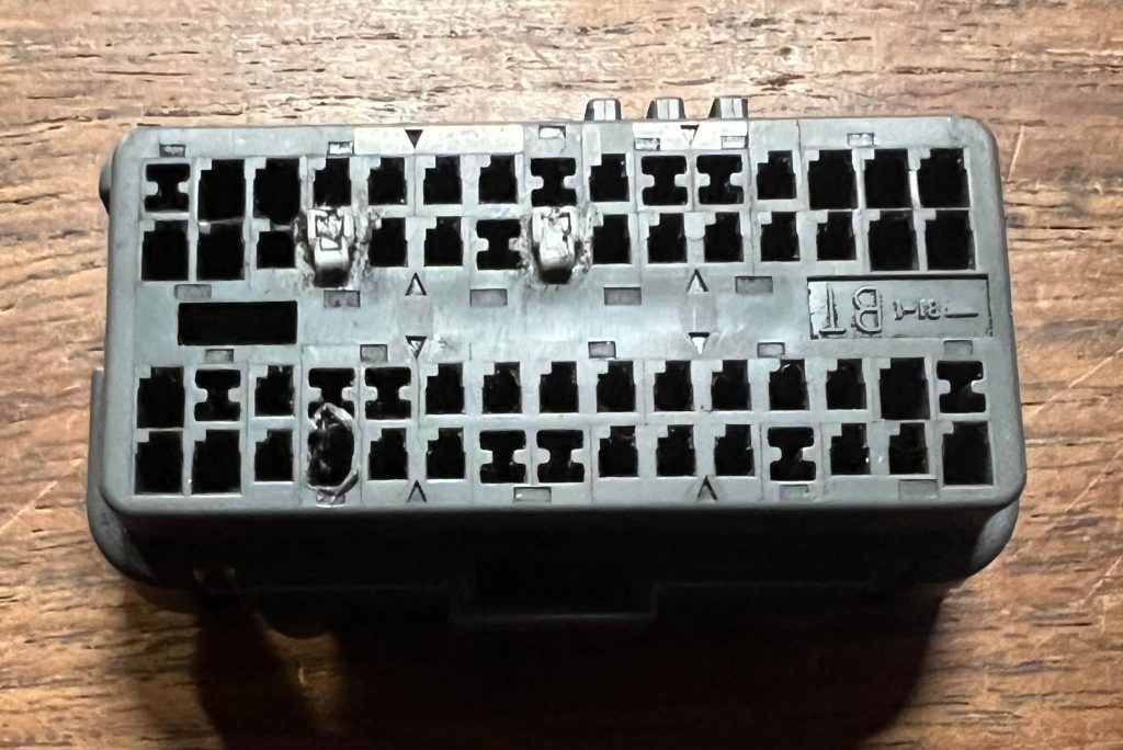 Als er geen bedrading aanwezig is voor de signalen van het stuur naar de motorcomputer (de ECU), dan moet die bedrading aangelegd worden. Mazda heeft er alles aan gedaan om dat te voorkomen, door de doorgangen in de connector af te sluiten. Die moeten daarom eerst geopend worden.