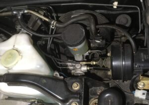 Daarnaast miste ik ook een vacuümaansluiting op de motor voor de actuator. Uiteindelijk heb ik er voor gekozen om die aansluiting te maken in de buis die de rembekrachtiger van vacuüm voorziet. Die buis is standaard onderdeel van elke NA, NB en NBFL, en dus makkelijk te krijgen, mocht je terug willen naar origineel.