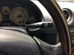 De hendel achter het stuur, maakt onderdeel uit van de combination switch. Ik probeer er altijd eentje te kopen waarvan de opdruk, de symbolen en letters, nog niet vervaagd is. Als je geluk hebt, zijn beide hendels nog netjes en kan de combination switch in zijn geheel gewisseld worden. Mocht de linker hendel minder fraai zijn, dan kun je overwegen om de nieuwe rechter hendel over te zetten op je huidige combination switch. In beide gevallen moet de huidige combination switch uit de auto. Daarvoor moeten de airbag, het stuur, en de clockspring even van de stuurkolom afgehaald worden.