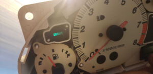 In de Noord-Amerikaanse NB en NBFL zat een cruise indicator in het instrument cluster, in Europa was dat niet het geval. In mijn cluster, was nog een positie niet actief in gebruik, omdat die bedoeld was voor auto’s met een automatische versnellingsbak. Die positie zit in de toerentellerplaat en het lensje heeft de tekst HOLD. Een tijdje heb ik die gebruikt en als HOLD SPEED gezien. De wetenschap dat er wel lensjes gebruikt zijn met de tekst CRUISE, heeft me ertoe gebracht om daarnaar op jacht te gaan. Uiteindelijk heb ik een oplossing gevonden, een lensje uit het cluster van een Noord-Amerikaanse NB of vroege NBFL, waarbij het lensje boven de brandstofmeter zat.