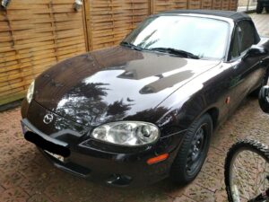 Deze MX-5, een hele vroege Memories III, stond te koop in Oberhausen. Deze special edition is geïntroduceerd op 6 september 2004, en op 22 september 2004, amper 2 weken later, kreeg deze auto dus al zijn kenteken. De foto’s uit de advertentie deden geen recht aan de auto vond ik, vooral de zwarte stalen velgen deden afbreuk aan het geheel. De auto werd aangeboden als auto voor de hobbyist, omdat de chassisbalken doorgeroest waren.