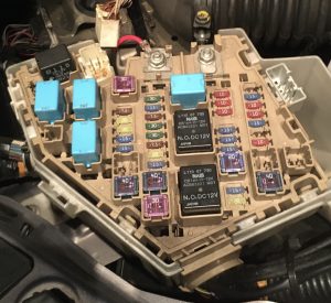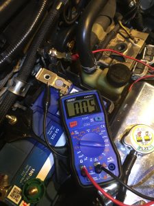 Genoeg over de theorie nu. We gaan aan de slag. Voordat we gaan beginnen met een meting, moeten we toegang hebben tot de accu en de zekeringkasten. Meestal zit er een zekeringkast onder de motorkap eentje in het interieur. Bij de NA en NB zit de accu in de kofferbak, bij de NC onder de motorkap. Omdat we de auto zoveel mogelijk in rust willen hebben, moeten we opletten met de verlichting. Als de kofferbak of een deur geopend wordt, kan er verlichting aan gaan. Soms ook als de motorkap open staat. Dat laatste is bijvoorbeeld het geval met mijn NBFL. Als de motorkap open is, brandt de kentekenverlichting, omdat de alarminstallatie dat wil. Een OBD2 adapter aangesloten laten zitten op de OBD2-poort is ook geen goed idee. Die blijft gewoon aan en kan ook 40 tot 50 mA verbruiken. Na gebruik de adapter uit de OBD2-poort verwijderen is beter.